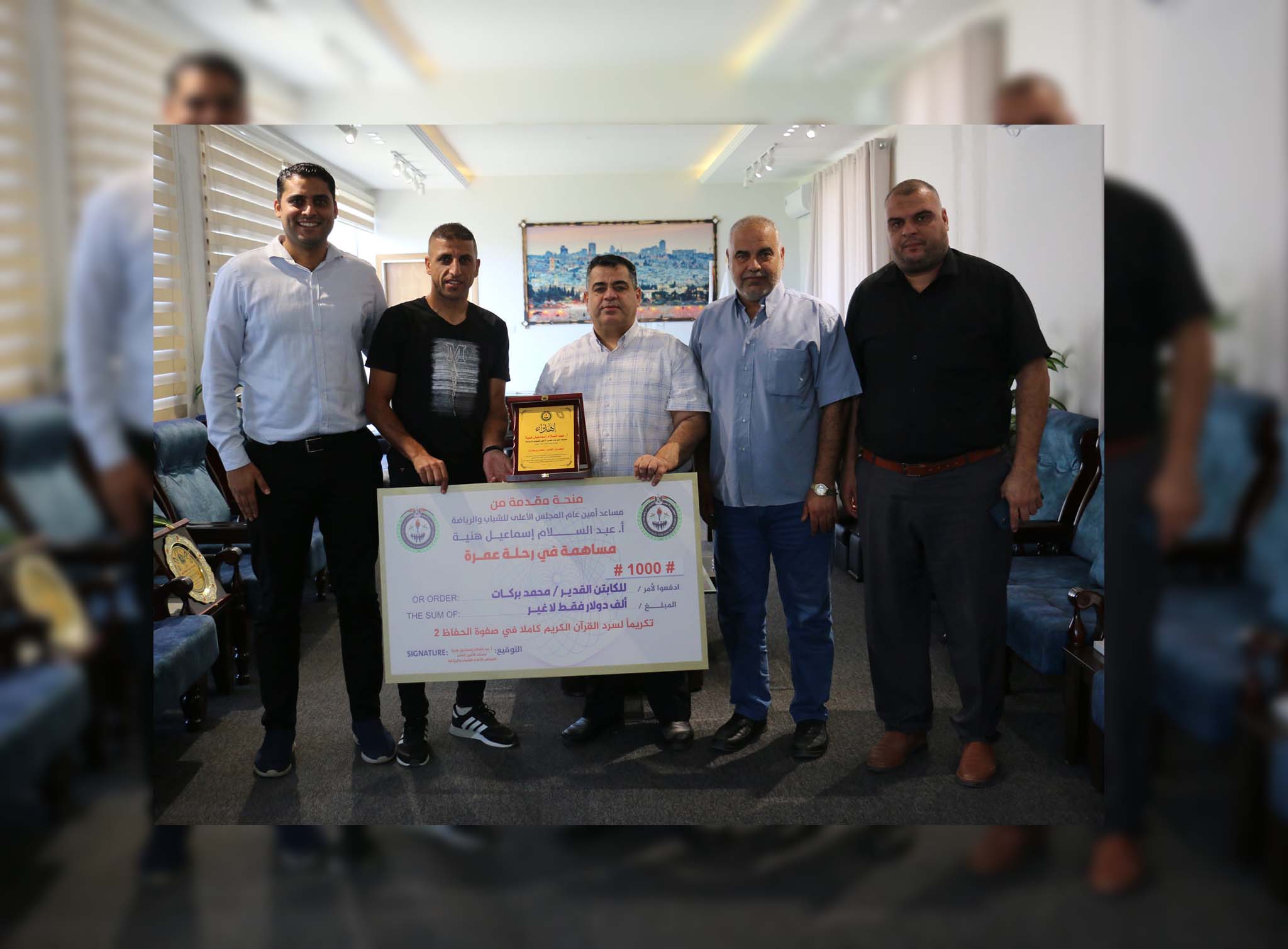 "هنية" يقدم منحة مالية بقيمة 1000 دولار للاعب "محمد بركات"